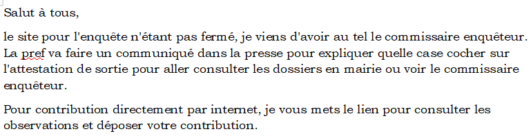 Il est donc important d'envoyer une lettre d'avis défavorable à l'adresse suivante AVANT LE VENDREDI 5 FEVRIER 2016 :