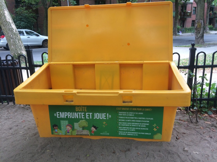 en me promenant à Villeray j’ai vu cette superbe boîte de jouets et je me rappelle que plusieurs parents ont déjà fait des commentaires que ça sera bien d’avoir une au parc NDG pour ranger les jouets le soir/pour l’hiver.