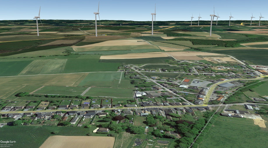 Illustration : vue du projet RENNER et du futur projet ENECO (en arrière-plan), depuis Clavier (projection Google Earth)