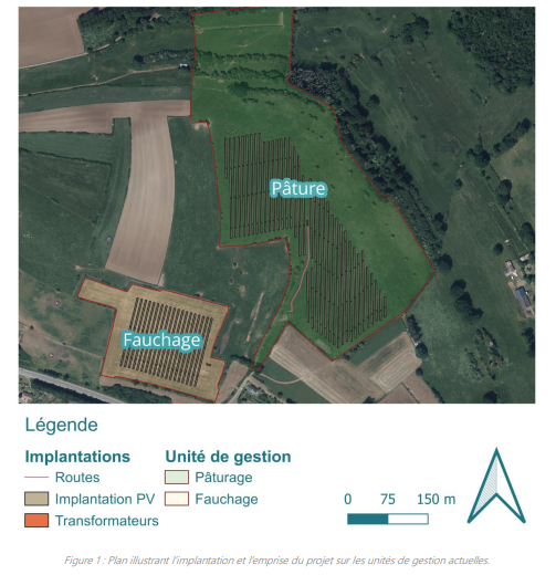 Vue imaginée par les promoteurs : des vaches au mileu de panneaux installés à plusieurs mètres de haut...